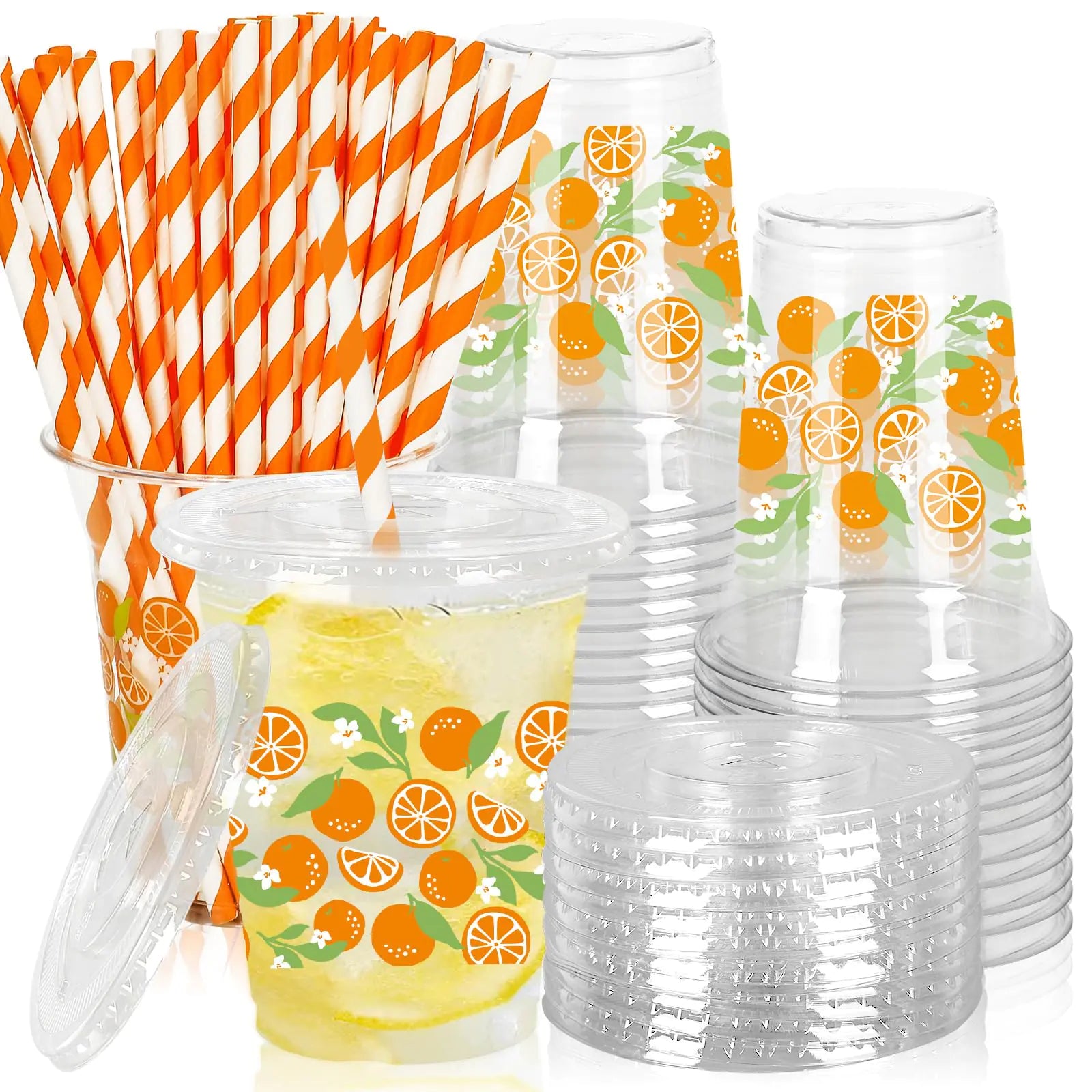 [WHAT’S INCLUDED: The package includes 50pcs plastic cups corresponding 50pcs lids and 50pcs paper straws the quantity is sufficient for your party decoration needs. LITTLE CUTIE DESIGN: Our cups are printed with cute orange and leaf patterns match little cutie theme and the paper straws are in orange stripe design create a happy atmosphere. GOOD QUALITY: These cups and lids are made from plastic material give you superior strength and durability the straws are made of paper safe and thick perfect to use. PROPER SIZE: Each plastic tumbler can hold up to 12oz perfect for guests to hold any drinks the straws are 7.8inch in length great addition to any party decorations. WIDELY USED: Use these party cup set to impress your guests with a fun cohesive theme during baby shower gender reveal party birthday and other occasions convenient and practical.]