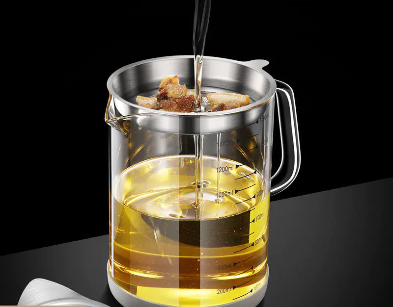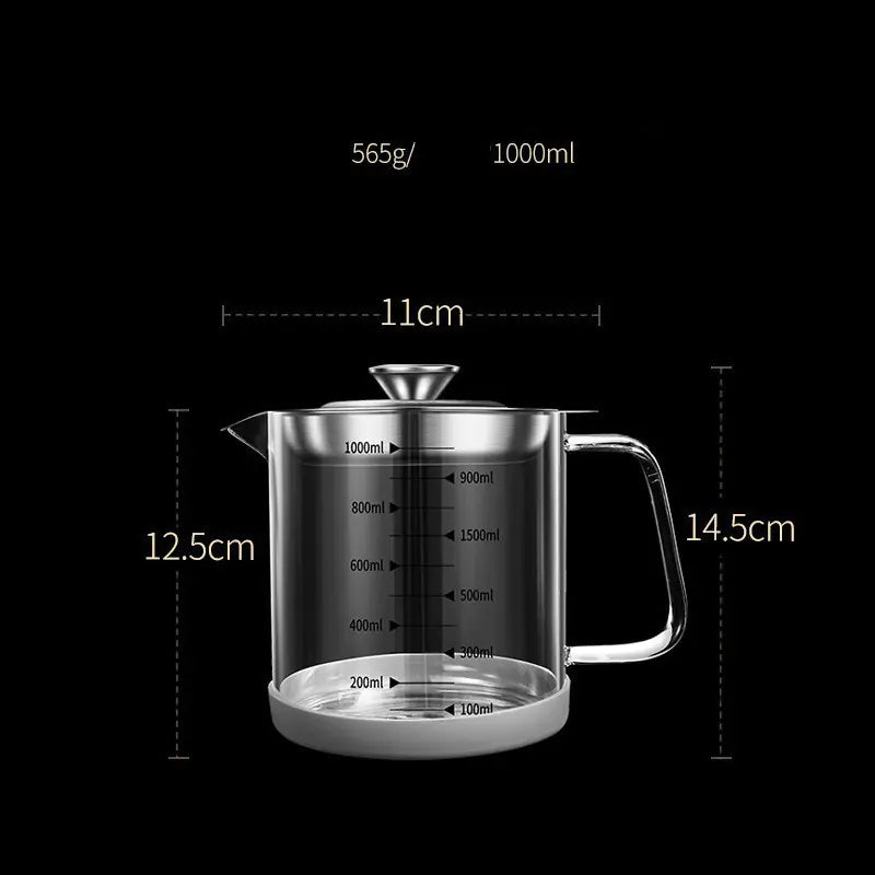 Crafted from durable 304 steel and high borosilicate glass, this oil filter pot is both sturdy and elegant. Available in two sizes, you can choose between the compact 1000ML or the larger 1500ML option to suit your cooking needs.