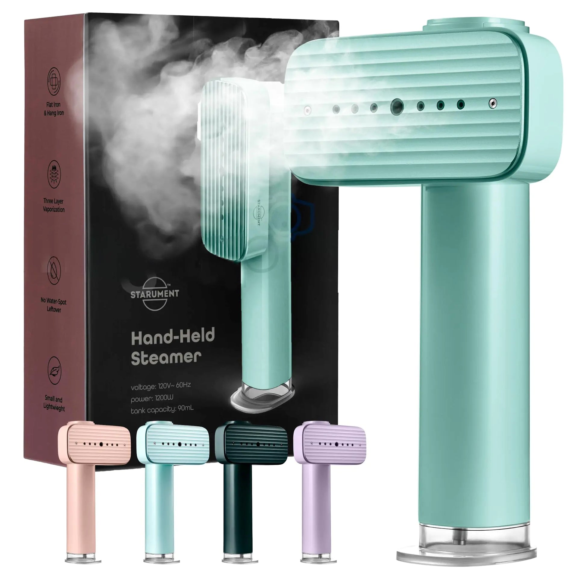 [Easy to Use – 1200W steamer produces soft long-lasting dry steam and heats up in just 18 seconds. Features a single-button operation 6ft power cord flannel bag heat-resistant glove. Lightweight and Long-Lasting – Weighs only 1.32 lbs and provides over 10 minutes of continuous steaming effectively removing wrinkles while keeping clothes dry. Steams in Any Orientation – Designed for versatile use at any angle with dual-use options for hanging or flat ironing and a rotating head for various positions. Do not rotate the ironing head during use. It can burn your hands. No Water Spots – Leaves no water spots making it perfect for all types of garments including coats wool and delicates. Please try to use pure or distilled water for ironing. Portable and Compact – Lightweight and easy to carry ideal for travel or daily use. (Note: Steamer is 120V - 60Hz and intended only for use in the US Mexico Taiwan and Japan; not suitable for 220-240V areas.)]